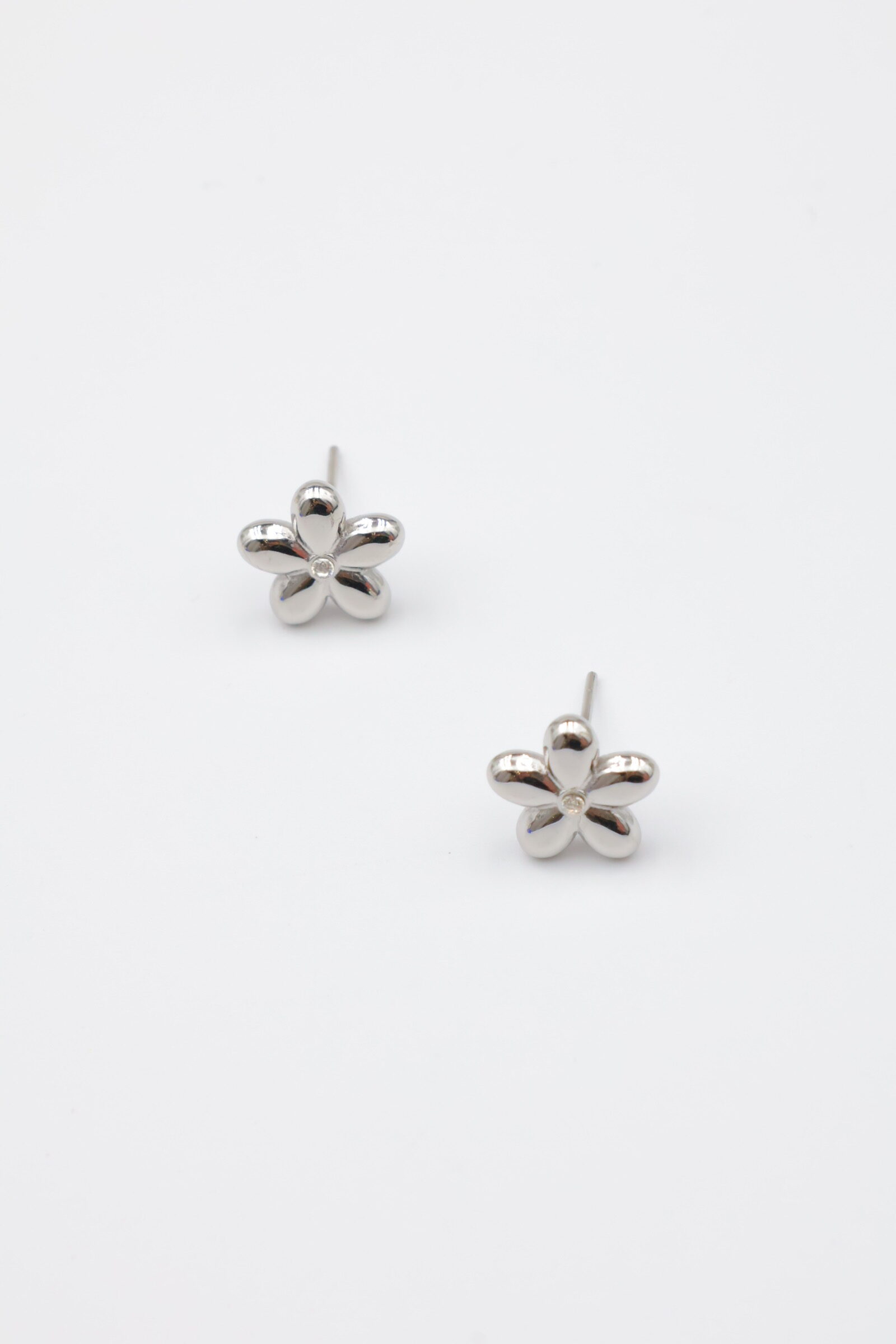 Charmantes boucles d’oreilles puces en forme de fleur dorée avec un petit strass central.