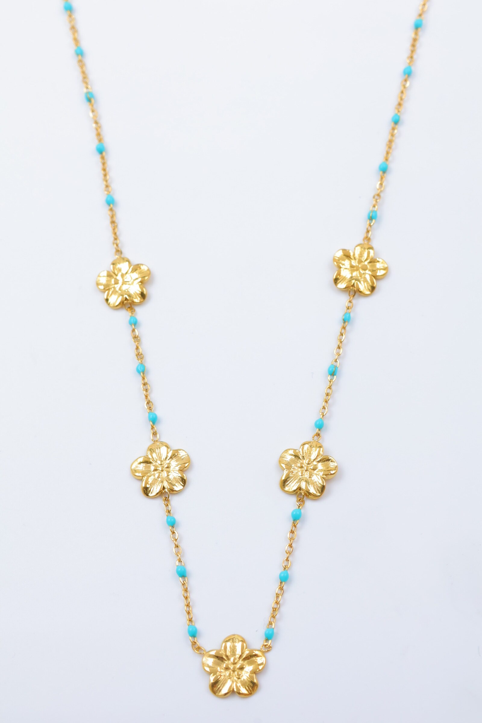 Ce collier doré orné de charms en forme de fleurs est fabriqué en acier inoxydable, facile d’entretien et durable, il ne ternit pas avec le temps.